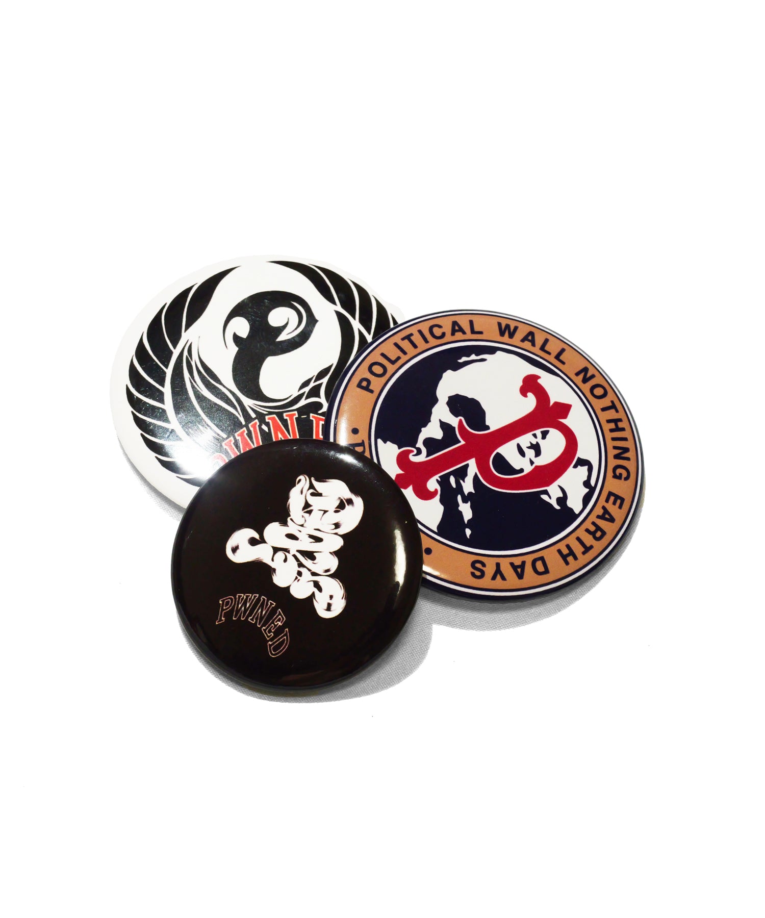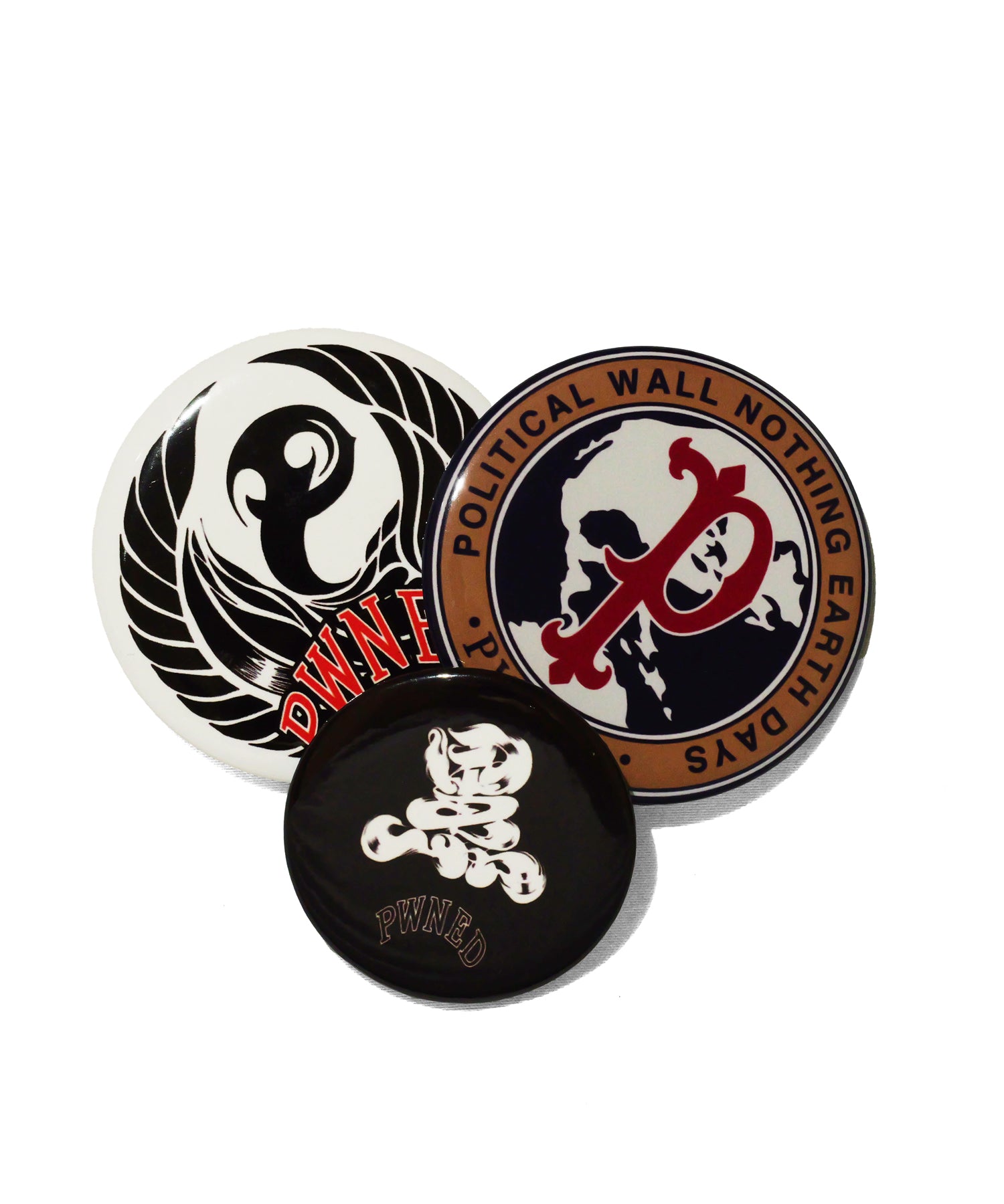 PWNEDらしさを凝縮したオリジナルデザインの缶バッジ3点セット。アートワークやロゴをミックスし、バッグやキャップ、ジャケットのアクセントに最適。遊び心とストリート感をプラスできる、ギフトにも嬉しいパックアイテム。