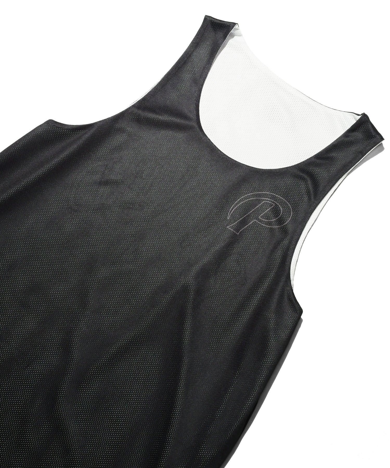 表裏で表情を変えるリバーシブル仕様のバスケシャツ。片面はブランドロゴが映えるアクティブなデザイン、もう一方はミニマルなルックで着回し力抜群。吸汗速乾の軽量メッシュ生地を採用し、ストリートでもスポーツでも存在感を放つ一枚。